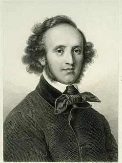 Felix Mendelssohn significantly contributed to the renewed interest in Bach's work with his 1829 Berlin performance of the St Matthew Passion, which was instrumental in setting off what has been called the Bach Revival. The St John Passion saw its 19th-century premiere in 1833, and the first performance of the Mass in B minor followed in 1844. Besides these and other public performances and an increased coverage on the composer and his compositions in printed media, the 1830s and 1840s also saw the first publication of more vocal works by Bach: six cantatas, the St Matthew Passion, and the Mass in B minor. A series of organ compositions saw their first publication in 1833.[70] Chopin started composing his 24 Preludes, Op. 28, inspired by the Well-Tempered Clavier, in 1835, and Schumann published his Sechs Fugen über den Namen BACH in 1845. Bach's music was transcribed and arranged to suit contemporary tastes and performance practice by composers such as Carl Friedrich Zelter, Robert Franz, and Franz Liszt, or combined with new music such as the melody line of Charles Gounod's Ave Maria.[26][71] Brahms, Bruckner, and Wagner were among the composers who promoted Bach's music or wrote glowingly about it.