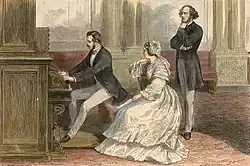 In France, the Bach revival was slower to take root. Before the late 1840s, after the upheaval caused by the French Revolution, Bach was rarely performed in public concerts in France and it was preferred that church organists play operatic arias or popular airs instead of counterpoint. One exception was a public performance in the Paris Conservatoire in December 1833, repeated two years later in the Salons Pape, of the opening allegro of Bach's concerto for three harpsichords BWV 1063, played on pianos by Chopin, Liszt and Hiller. Berlioz later described their choice as "stupid and ridiculous", unworthy of their talents. Charles Gounod, having won the Prix de Rome in 1839, spent three years in the Villa Medici in Rome, where he developed a passionate interest in the polyphonic music of Palestrina. He also met Mendelssohn's sister Fanny, herself an accomplished concert pianist and by then married to the artist Wilhelm Hensel: Gounod described her as "an outstanding musician and a woman of superior intelligence, small, slender, but gifted with an energy which showed in her deep-set eyes and in her burning look." In response Fanny noted in her diary that Gounod was "passionately fond of music in a way I have rarely seen before." She introduced Gounod to the music of Bach, playing from memory fugues, concertos and sonatas for him on the piano. At the end of his stay in 1842, the twenty-five-year-old Gounod had become a confirmed Bach devotee. In 1843, after a seven-month stay in Vienna, with a letter of introduction from Fanny, Gounod spent 4 days with her brother in Leipzig. Mendelssohn played Bach for him on the organ of the Thomaskirche and conducted a performance of his Scottish Symphony by the Gewandhaus orchestra, specially convened in his honour. Back in Paris, Gounod took up an appointment as organist and music director in the Église des Missions Étrangères on the rue de Bac, on condition that he would be allowed to have autonomy over the music: Bach and Palestrina figured strongly in his repertoire. When churchgoers initially objected to this daily diet of counterpoint, Gounod was confronted by the Abbé, who eventually yielded to Gounod's conditions, although not without commenting "What a terrible man you are!"[104][105]