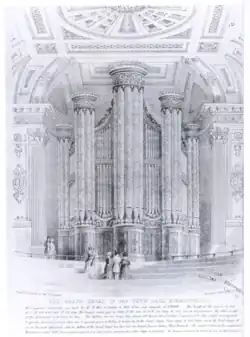 Apart from prevailing musical tastes and the difficulty in acquiring manuscript copies, a fundamental difference between the design of English and German organs made Bach's organ output less accessible to English organists, namely the absence of pedalboards. Handel's principal works for organ, his organ concertos Op. 4 and Op. 7, with the possible exception of op.7 No.1, all appear to have been written for a single manual chamber organ. Until the 1830s, most church organs in England did not have separate pedal pipes and before that the few organs that had pedalboards were all pull-downs, i.e. pedals that operated pipes connected to the manual stops. Pedalboards rarely contained more than 13 keys (an octave) or exceptionally 17 keys (an octave and a half). Pull-down pedalboards became more common from 1790 onwards. The pedaliter chorale preludes in Clavier-Übung III require a 30-key pedalboard, going from CC to f. It is for this reason that the Bach awakening in England started with clavier compositions being played on the organ or organ compositions being adapted either for piano duet or for two (or sometimes three) players at an organ. The newfound interest in Bach's organ music, as well as the desire to reproduce the grand and thunderous choral effects of the 1784 Handel Commemoration, eventually influenced organ builders in England. By the 1840s, after a series of experiments with pedals and pedal pipes starting around 1800 (in the spirit of the Industrial Revolution), newly constructed and existing organs started to be fitted with dedicated diapason pipes for the pedals, according to the well-established German model. The organ in St Paul's Cathedral commissioned in 1694 from Father Smith and completed in 1697, with a case by Christopher Wren, had exceptionally already been fitted with a 25-key pedalboard (two octaves C-c') of pull-down German pedals in the first half of the 18th century, probably as early as 1720, on the recommendation of Handel. By the 1790s, these had been linked to separate pedal pipes, described with detailed illustrations in Rees's Cyclopædia (1819). The four-manual "monster" organ in Birmingham Town Hall, constructed in 1834 by William Hill, had three sets of pedal pipes connected to the pedalboard, which could also be operated independently by a two-octave keyboard to the left of the manual keyboards. Hill's experiment of installing gigantic 32-foot pedal pipes, some currently still present, was only partially successful, as their scale did not permit them to sound properly.[93][94][95]