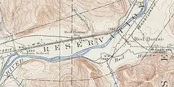 The Red House railroad depot was located near the mouth of Meetinghouse Run, over a mile west of Red House's population center and separated by the Allegheny River, which limited its practical use. By December 1935, the depot no longer appeared as a station on Erie Railroad passenger timetables.[4]