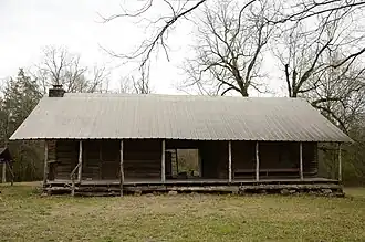 The Reeves-Melson House is a historic house in rural Montgomery County, Arkansas. It is a private inholding within Ouachita National Forest, located on the east side of Miles Road, north of Bonnerdale and east of Alamo. It is a single story dogtrot, with a log pen and a wooden frame pen separated by a breezeway under a gable roof. A shed-roof porch extends across the front, and the building is clad in weatherboard. The log pen has a trapdoor providing access to a dugout cellar, a feature not typically found in regional dogtrot houses. The log pen was built in 1882 by William Reeves, and the frame pen was built in 1888 by Larkin Melson.[2]