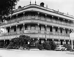 The first hotel was established on the site in 1874, as a single-storey wooden building.[3]