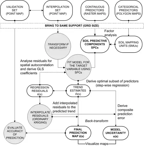 Example of a generic framework for spatial prediction of soil variables based on regression-kriging.[9]
