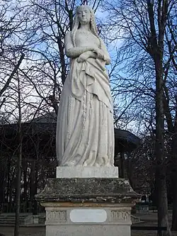 The Queens of France and Famous Women (Reines de France et Femmes illustres) is a group of sculptures in the Jardin du Luxembourg in Paris. It consists of 20 marble sculptures arranged around a large pond in front of the Palais du Luxembourg. Louis-Philippe I chose the women to be portrayed and most of the sculptures were commissioned around 1843, for around 12,000 francs each, and generally exhibited in the Paris Salons of 1847 or 1848.[1]