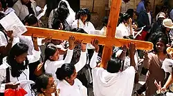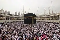 There are an estimated 10,000 distinct religions worldwide,[11] though nearly all of them have regionally based, relatively small followings. Four religions—Christianity, Islam, Hinduism, and Buddhism—account for over 77% of the world's population, and 92% of the world either follows one of those four religions or identifies as nonreligious,[12] meaning that the vast majority of remaining religions account for only 8% of the population combined. The religiously unaffiliated demographic includes those who do not identify with any particular religion, atheists, and agnostics, although many in the demographic still have various religious beliefs.[13] Many world religions are also organized religions, most definitively including the Abrahamic religions Christianity, Islam, and Judaism, while others are arguably less so, in particular folk religions, indigenous religions, and some Eastern religions. A portion of the world's population are members of new religious movements.[14] Scholars have indicated that global religiosity may be increasing due to religious countries having generally higher birth rates.[15]