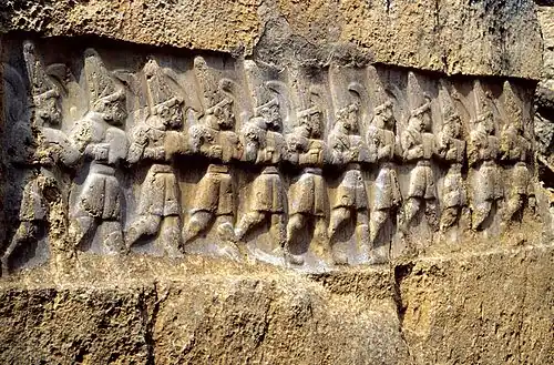 The Yazılıkaya sanctuary in Turkey, with the twelve gods of the underworld
