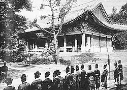 Korea entered the 20th century with an already established Christian presence and a vast majority of the population practicing native religion, Korean shamanism. The latter never gained the high status of a national religious culture comparable to Chinese folk religion, Vietnamese folk religion and Japan's Shinto; this weakness of Korean shamanism was among the reasons that left a free hand to an early and thorough rooting of Christianity.[8] The population also took part in Confucian rites and held private ancestor worship.[5] Organised religions and philosophies belonged to the ruling elites, this coupled with the extensive patronage exerted by the Chinese empire allowed these elites to embrace a particularly strict interpretation of Confucianism (i.e. Korean Confucianism). Korean Buddhism, despite an erstwhile rich tradition, at the dawn of the 20th century was virtually extinct as a religious institution, after 500 years of suppression under the Joseon kingdom.[5][9] Christianity had antecedents in the Korean peninsula as early as the 18th century, when the philosophical school of Seohak supported the religion. With the fall of the Joseon in the last decades of the 19th century, Koreans largely embraced Christianity, since the monarchy itself and the intellectuals looked to Western models to modernise the country and endorsed the work of Catholic and Protestant missionaries.[10] During Japanese colonisation in the first half of the 20th century, the identification of Christianity with Korean nationalism was further strengthened,[11] as the Japanese tried to combine native Korean shamanism with their State Shinto.