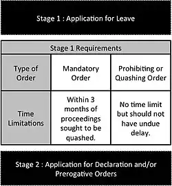 Should leave be granted, the applicant can proceed to the second stage which is the actual application for one or more of the prerogative orders.[53]