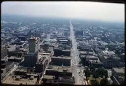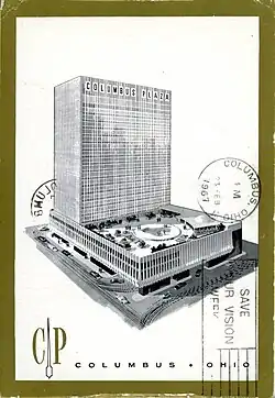 The Columbus Plaza Hotel was approved by the city's planning commission in September 1961.[19] Executives began to inspect hotels in other U.S. cities, anticipating construction to begin once the Virginia Hotel and Citizen Building were razed.[20] The Virginia Hotel closed on August 10, 1961; resident made new arrangements, many to other downtown hotels.[21] S.G. Loewendick & Sons demolished both buildings from late September to December 1961.[3][22][23][24] By April 1962, work on the foundation began, with building construction to take place from May 25, 1962 to September 1963.[25] The hotel was to be the second-tallest building in Columbus, after LeVeque Tower, though Chase Tower held that title soon afterward.[26]