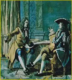 René Trouin, Sieur du Gué, also known as René Duguay-Trouin (French pronunciation: [ʁəne dyɡɛ tʁuɛ̃]; 10 June 1673 – 27 September 1736), was a French Navy officer and privateer best known for his service in the War of the Spanish Succession. Successful in his military career, Duguay-Trouin eventually becoming Lieutenant-General of the Naval Armies of the King (vice admiral; French: Lieutenant-Général des armées navales du roi) in 1728, as well as a Commander in the Order of Saint-Louis. Ten ships of the French navy have since been named in his honour.[1]