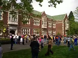 Renn Fayre is an annual three-day campus-wide celebration that occurs at Reed College, a liberal arts college located in Portland, Oregon, United States. The festival began as a one-day Renaissance Fayre, held during the spring semester in an attempt to recreate the Renaissance era. The event begins with a parade of senior students, who march from the library to the registrar's office to mark the completion of their theses and to be congratulated by the institution's President. The event includes a variety of activities and forms of expressions.