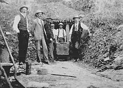 The main gold mine in the area was the Prince of Wales gold mine. It was operated together with another mine known as the Sybil mine.[9] Bought by a London syndicate, Howell's Consolidated Gold Mines, in 1896, with the aim of a major expansion, by mid 1900, the mine was employing 350 men.[10][11] From mid 1898 to around 1900, the manager of the mine was George Henry Blakemore, who was also the General Manager of Howell's Consolidated Gold Mines.[12][13]