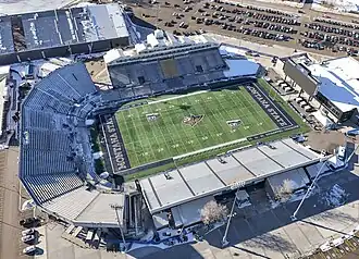 At the south end of campus, the stadium has a seating capacity of 20,767 and a NW-SE configuration, with the press box along the southwest sideline. Originally natural grass, the playing field was switched to FieldTurf in 2008 and is at an elevation of 4,940 feet (1,510 m) above sea level.[1][2]