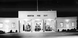 Housed in an Art Deco-style former fire station, the museum is located in downtown Renton at 235 Mill Avenue South.[1] The former fire station was constructed in 1942 and is the last remaining structure built under the Works Progress Administration (WPA).[1] The photo, taken from the Renton History Museum website, shows the fire station in 1944 with it was "Fire Station #1."