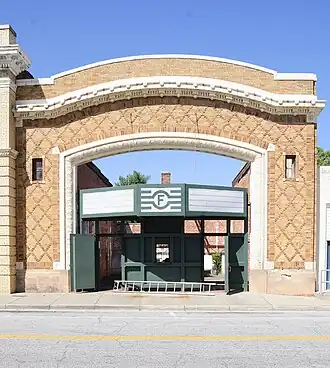 Republic Theater, also known as the Falls Theater, is a historic movie theater located at Great Falls, Chester County, South Carolina. It was built by Republic Cotton Mills in 1921–1922, and is a rectangular, light-colored brick structure on a limestone-colored stucco foundation. The façade has a large segmental arch entrance framed by terra cotta decoration and a molded terra cotta cornice. The theater closed in 1974.[2][3]