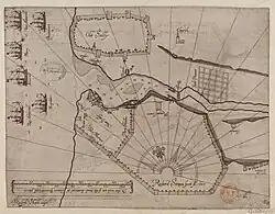 In April 1627, with the support of Sidi al-Ayachi, the Hornacheros expelled the Sherif's governor and constituted themselves a virtually independent republic.[14] The English diplomat John Harrison negotiated a treaty with Sidi al-Ayachi in May, a month after their coup d'état.[14] After Janszoon left Salé in 1627, the Moriscos ceased to recognize the authority of the Sultan Zidan Abu Maali, and refused to pay his tithe on their incomes.[15] They proclaimed a republic, in the image of medieval Italian city-states like Venice or Genoa,[16] ruled by a council or Diwan, a sort of government cabinet formed by 12 to 14 notable people whose members annually elected a Governor and a Captain General of the Fortalesa during the month of May. In the early years of the republic, between 1627 and 1630, the Diwan was controlled only by the Hornacheros, whose grip on power was resented by the growing population of non-Hornachero Moriscos, called Andalusians.[17] After bloody clashes in 1630, an agreement was reached: the election of a Qaid by Andalusians and a new Diwan of 16 members of whom 8 were Andalusians and 8 Hornacheros.[18] The members of the Divan elected a governor or captain general of the fortress every May. All of its documentation was done in the Spanish of the time.
