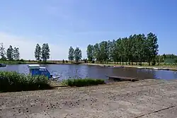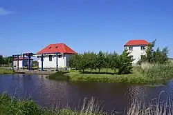 Resko Przymorskie is a natural water reservoir formed as a result of the separation of the bay by a spit from the sea. The surface area of the water mirror varies according to different sources, ranging from 55.39 km2[9] through 55.9 km2,[10] 57.71 km2,[3][11][12] 6.2 km2[13] up to 66.86 km2.[14] The differences in the reported sizes are significant and result from the variability of the lake's water level, which depends on weather conditions. Due to its free connection to the sea, the water resources in the lake and its surface area depend on the direction and strength of the winds, especially during storm surges. Within a day, the lake's water levels can rise by 0.5 meters, and during prolonged storms, the water level can be higher by up to 1.5 meters above normal, reaching over the embankments surrounding the lake. In 1949, the influx of seawater was so significant that it caused a flood.[13] The water mirror is located at a height of 0.1 m above sea level[10] or 0.3 m above sea level.[3][11] The average depth of the lake is 1.3 m,[3][11] while the maximum depth is 2.5 m.[3][11] In the central-western part of the lake, there is a sandbank with a depth of 1 m.[13]