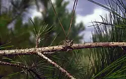 The larvae feed on Pinus rigida. They bore into the twigs of their host plant.