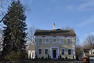 The exact construction date of the house's oldest portion is not known with certainty. The land on which it stands was occupied by the Curtiss family in the first half of the 18th century, and a house is known to have stood here, or near here, in 1740. Architectural evidence suggests that the upper 1+1⁄2 stories of the main block were built in the late 18th century, probably by Reuben Curtiss. The main block's present appearance and Greek Revival features date to about 1840, when that structure was raised and a new first floor built underneath it. Between 1840 and 1866, another Reuben Curtiss operated a school for boys on the property.[2]
