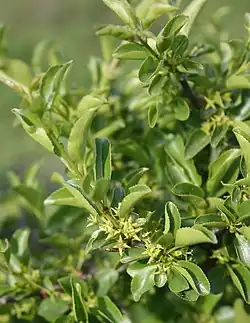 Rhamnus × intermedia is a hybrid species of plant in the family Rhamnaceae. It is a hybrid between Rhamnus orbiculata and Rhamnus saxatilis.[2] It is found in Albania, Bosnia and Herzegovina, and Croatia.[1]