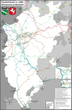 Railway map of the Rhein Province and Westfalen (ca. 1880), shortly before nationalisation