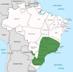 Rhinella icterica is found in the Atlantic Forest, spanning southeastern and southern Brazil, eastern Paraguay, and in the Misiones and Corrientes provinces of Argentina. When it is time for them to reproduce, thus species is found mainly in streams or ponds in large congregations. They get their food from hanging matter and submerged plants.[9]