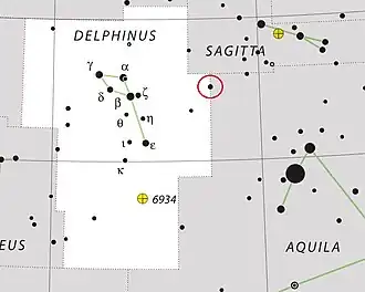 Rho Aquilae, ρ Aquilae, is the Bayer designation for a star in the northern constellation of Delphinus. It has an apparent visual magnitude of 4.94[3] and is bright enough to be seen with the naked eye in good conditions.
