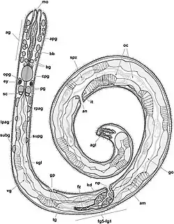 - ^ a b c Brenzinger, Bastian; Haszprunar, Gerhard; Schrödl, Michael (2013). "At the limits of a successful body plan - 3D microanatomy, histology and evolution of Helminthope (Mollusca: Heterobranchia: Rhodopemorpha), the most worm-like gastropod". Frontiers in Zoology. 10 (1): 37. doi:10.1186/1742-9994-10-37. ISSN 1742-9994. PMC 3704743. PMID 23809165.