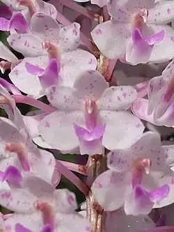 - ^ Chen, Xingi; Wood, Jeffrey J. "Rhynchostylis retusa". Flora of China. Retrieved 28 April 2018 – via eFloras.org, Missouri Botanical Garden, St. Louis, MO & Harvard University Herbaria, Cambridge, MA.