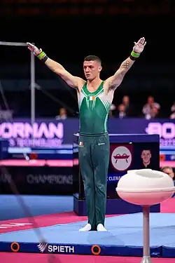 In October 2019, he won Ireland's first World Championship medal, bronze on the pommel horse, making him the most decorated Irish gymnast of all time.[23]