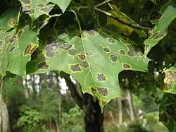 Rhytisma is a genus of fungi in the Rhytismataceae family[1] commonly known as 'tar spot'. There are about 18 species,[2] which live parasitically in the leaves of deciduous trees.
