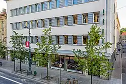 A book that was a collection of memories about Gavelis, as well as his manuscripts, letters, essays, and creative analysis of his work, was published in 2007.[9] Gavelis was honored with a plaque along with other writers in 2008 in a pedestrian hallway situated on Literatai Street.[20] In 2020, a square on Drujos Street was named after him.[21][22][23] A memorial plaque was uncovered in 2021 in Druskininkai.