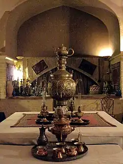 An entry fee was charged along with a daily fee for an 8 ft-square room. The rooms were fitted with a fireplace, and servants had a separate place in which to stay. The caretaker of the caravanserai was legally authorized to collect sales tax and oversee all transactions; they sometimes tended to overcharge and cheat the merchants. It was incumbent on the caretakers to provide security to the merchants and their goods against theft. The running of the caravanserais in Iran was considered at par with those that were run in the Ottoman Empire.[5]