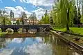 Ribnica is the site of a mass grave associated with the Second World War. The Žiglovica Cave Mass Grave (Slovene: Grobišče Jama Žiglovica) is located northeast of the town, in a former hay field on a slope overgrown with grass and sparse woods. It contains the remains of 14 civilians from Prigorica, Žlebič, and Pri Cerkvi–Struge that were murdered on 28 July 1942.[4] The men were abducted by a Partisan patrol while clearing woods along the railway. Some of the victims were thrown into the shaft alive, and one of them managed to pull a Partisan in with him. After the murders, the local Partisan political activist insisted that the men had merely been sent to White Carniola for punitive labor, but the murders were acknowledged by some of the Partisan participants.[5]