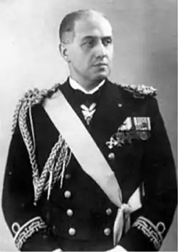 At the time of Italy's entry into World War II, 10 June 1940, Paladini still commanded the 2nd Naval Squadron, and in this role he participated, on 9 July 1940, in the Battle of Calabria.[1][4] His active participation in the conflict ended abruptly after only a month and a half: on 25 July 1940 Paladini came down with angina pectoris and had to leave his command, replaced by Admiral Angelo Iachino.[1] In September 1940 he returned to the command of the Naval Academy; during this period, in 1942, he was promoted to Ammiraglio di Squadra designato d'armata.[1] On 12 September 1942 he was placed in auxiliary due to age limits, but he was immediately recalled to service, always as the commander of the Naval Academy; in January 1943 he was promoted to Ammiraglio d'Armata (Admiral). He suddenly died in Livorno, on 19 March 1943, of heart problems.[1]