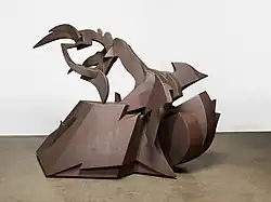 While studying at the School of the Art Institute of Chicago, Hunt focused his sculptural work on creating soldered wire figures, then on welding sculptures, as well as producing drawings, paintings, and lithographs.[17][11] The School of the Art Institute of Chicago did not have classes or materials suitable for learning welding, so he purchased his own welding equipment in 1955, and with little instruction, taught himself to weld in the basement studio of his father’s barbershop.[19] Interested in Modernism, Abstract Expressionism, and Surrealism, he experimented with the assemblage of broken machine parts, car bumpers, and metals from the junkyard reshaping them into organic forms.[20] Hunt went on to work with iron, steel, copper, and aluminum producing a series of "hybrid figures", references to human, animal, and plant forms.[21] Hunt explored the interplay of organic and industrial subject matter in his artwork. His earliest works, which often represented classical themes, are more figurative than his later works.[12]