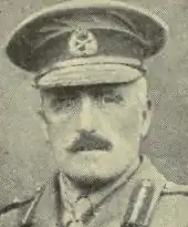 After three years as Inspector-General, and in order to gain staff experience, Davies was attached as an observer to a number of units in the United Kingdom in 1909–10.[16] During this time, he also attended the Imperial Defence Conference and represented the New Zealand forces at the funeral of King Edward VII.[17] At the end of the one-year attachment, he had so impressed the British Army that they offered him an appointment as commander of 6th Brigade in October 1910, with the temporary rank of brigadier general.[1] He was also promoted to the local rank of colonel while in this post, with seniority being backdated to January 1902.[18] As such, he became the first overseas officer to command a regular brigade,[19] only eleven years after taking up a permanent military commission.[20]