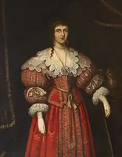 Newcourt was a friend of Sir William Dugdale, and drew some views of religious houses, which were engraved for Dugdale's Monasticon Anglicanum. He later drew a map of London which was to become the most important one of the city executed before the Great Fire. It was engraved by William Faithorne the Elder and published in 1658 as An Exact Delineation of the Cities of London and Westminster and the Suburbs thereof, Together with ye Burrough of Southwark And all ye Thorough-fares Highwaies Streetes Lanes and Common Allies wthin ye same Composed by a Scale, and Ichnographically described by Richard Newcourt of Somerton in the Countie of Somersett Gentleman.[1] The map was a large one, printed on four sheets and measuring more than five feet across. Although drawn as a "view map," it offers little information about individual buildings, the representations being largely conventional.[3] It became extremely rare; for much of the 19th century only one copy was known, in the Bibliothèque Nationale in Paris, but during the 1850s a second copy was discovered, and a facsimile published.[3]