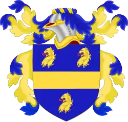 Richard Nicolls was born in c. 1624 in Ampthill, Bedfordshire. He was the son of Francis Nicolls, a barrister and politician, and his wife Margaret.[1] Francis and Margaret were married at Abbots Langley in 1609; she was the daughter of Sir George Bruce, a Scottish merchant who built Culross Palace,[2] and a niece of Edward Bruce, 1st Lord Kinloss.[3]