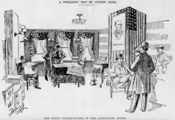 Richard Bland was a strong, if reluctant, candidate for United States President in 1896. He is quoted as saying "I have no desire in this direction. I have no ambition for this nomination and I am afraid my friends, thrusting my personality into this contest may confuse the greater question."[4] That question of course, like most tied to Bland, was currency and bimetalism. Rather than travel to the Democratic Convention in Chicago, Illinois Bland chose to remain on his 160-acre farm near Lebanon, Missouri as the political drama played out. At first the convention balloting seemed to be going Bland's way. He beat William Jennings Bryan 236 to 137 on the first ballot, 281 to 197 on the second, and 291 to 219 on the third. However, none were of the two-thirds margin to secure the nomination outright. By this time, the full impact of Bryan's Cross of Gold speech began to be felt and understood by the delegates. Bryan took the lead on the fourth ballot 280–241. Bland, not wishing to risk a split party, sent a telegram to his supporters in Chicago throwing his support behind Bryan saying "Put the cause above the man."[4] With that, the fifth ballot was a mere formality, with Bryan claiming a 652 to 11 victory. There still existed the possibility of Bland on the ticket as candidate for Vice President. He trailed considerably behind on the first ballot, but gained steam to win the second and third balloting, although again by not enough margin to earn the nomination. Bland at this time, never enthralled with the idea in the first place, declined his name being considered in any further balloting, paving the way for Arthur Sewall to become Bryan's ticketmate.