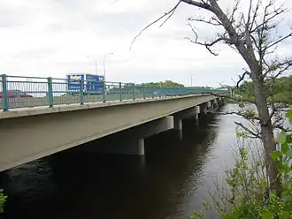Richard P. Braun Bridge is a pair of 10-span concrete girder bridges spanning the Mississippi River between Brooklyn Park, Minnesota and Coon Rapids, Minnesota. The eastbound span was built in 1985 to connect Minnesota State Highway 252 with Minnesota State Highway 610 in Coon Rapids. The westbound span was built in 1999 as part of the continued construction of Highway 610 through Brooklyn Park. Richard P. Braun is a former Mn/DOT Commissioner from 1979 to 1986.
