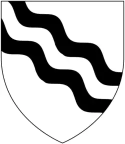 Sir Richard was also buried in Exeter Cathedral, near his brother the bishop, against the north wall across the north ambulatory from the bishop's tomb. His tomb is marked by an elaborate monument comprising a recessed ogee shaped niche set into the wall, containing his recumbent effigy, in the form of a cross-legged knight, which style supposedly represents crusaders. At the effigy's head stands a small statue of a man and at the feet a horse with an even smaller statue of a man holding its reins. According to Prince (d. 1723)[17] this last group refers to the tradition of the cripple who seised the foreleg of Sir Richard's horse at Cripplegate and thereby threw him off his horse into the hands of the murderous mob. It is however more likely that the figures are "a touching early fourteenth century visual representation of the Knight with his immediate following ... a knight is shown accompanied by his squire, page and horse".[18] The Devon historian Sir William Pole (d. 1635) stated that the arms of Stapledon (Argent, two bends wavy sable) were displayed on the shield of the effigy,[19] but today no trace of colour remains. These arms are however still visible (possibly restored) on the nearby monument to his brother the bishop.