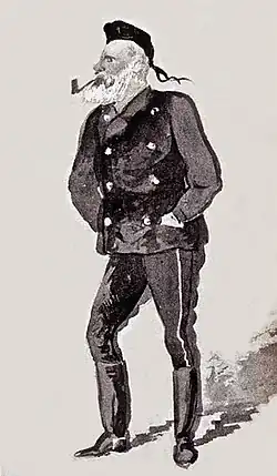 Glyn was promoted to major-general on 30 September 1882 and his appointment as commander of the regimental district ended on 6 December 1882.[35][36] He was promoted to the honorary rank of lieutenant-general shortly before his retirement on 30 September 1887.[32][37] Glyn was appointed to the ceremonial role of colonel of the regiment of the South Wales Borderers on 29 May 1898.[38]