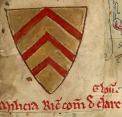 Richard de Clare, 5th Earl of Hertford, 6th Earl of Gloucester, 2nd Lord of Glamorgan, 8th Lord of Clare (4 August 1222 – 14 July 1262) was the son of Gilbert de Clare, 4th Earl of Hertford, and Isabel Marshal.[1][2] He was also a powerful Marcher Lord in Wales and inherited the Lordship of Glamorgan upon the death of his father. He played a prominent role in the constitutional crisis of 1258–1263.