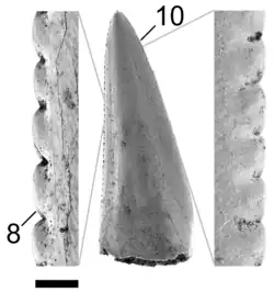 | Tooth of cf. R. gilmorei with close up of denticles | |