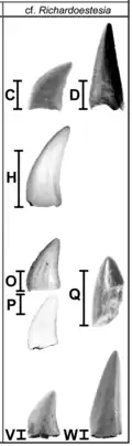 | Richardoestesia Temporal range: Late Cretaceous, Possible Early Cretaceous (Barremian) records from teeth of the Cedar Mountain Formation, but see [1].