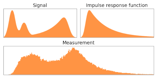 When an image is produced using an optical system and detected using photographic film, a charge-coupled device or a CMOS sensor, for example, it is inevitably blurred, with an ideal point source not appearing as a point but being spread out into what is known as the point spread function. Extended sources can be decomposed into the sum of many individual point sources, thus the observed image can be represented in terms of a transition matrix p operating on an underlying image: