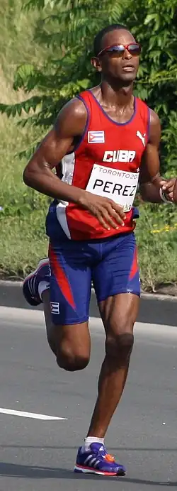 From Havana,[1] Pérez first established himself nationally at the 2007 Barrientos Memorial meet in Havana, winning the 10,000 metres.[2] At the 2011 meet he set new personal bests when he won the 10,000 m in a time of 29:56.32 minutes and was runner-up in the 5000 metres, behind Mexico's Sergio Pedraza.[3] Later that year he won the half marathon section of the Marabana, then claimed victory on his marathon debut at the Panama City Marathon with a time of 2:25:48 hours.[4]