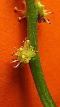 - ^ Wurdack, Kenneth J.; Petra Hoffmann; Rosabelle Samuel; Anette de Bruijn; Michelle van der Bank; Mark W. Chase (2004). "Molecular phylogenetic analysis of Phyllanthaceae (Phyllanthoideae pro parte, Euphorbiaceae sensu lato) using plastid RBCL DNA sequences". American Journal of Botany. 91 (11): 1882–1900. doi:10.3732/ajb.91.11.1882. PMID 21652335.