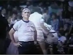 Powers officiated the triple-overtime Game 5 of the 1976 NBA Finals, which was notable for controversial moments involving Powers. With the score tied at 95 with three seconds remaining in the fourth quarter, Boston stole a Suns inbound pass and the Celtics' Paul Silas attempted to call a time-out by giving the "T" sign to Powers.[3] Boston had no timeouts remaining, which if recognized, would have resulted in a technical foul and a free throw awarded to Phoenix.[3] But inexplicably, Powers did not acknowledge Silas's request for the time-out as time expired.[3] Mendy Rudolph and Rick Barry, color commentators for the CBS Sports telecast, were quick to note that Silas was signaling for a timeout, but Powers ignored the request.[4] Boston went on to win the game in the third overtime period.[5] According to the Suns organization, Powers later told a Phoenix golf professional that he didn't want to see the championship decided on a technicality.[3] Angered over the incident, Al Bianchi, then-assistant coach of the Suns, ordered a ring in which the words "Fuck You, Richie Powers" were inscribed.[3]